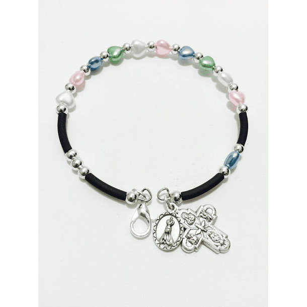 Bracelet with hearts various colors, medal of Our Lady and cross.