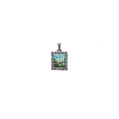 Medalha da Aparição de Nossa Senhora aos três Pastorinhos com rebordo em prateado com imagem de Imaculado Coração de Jesus.